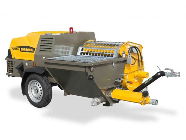 T20X fleksibel allround pumpe.Arvtagereren til populære Talent. Utstyrt med mikser med hydraulisk løft, og innebygget kompressor . For pumping, sprøyting og injisere sement slurry. Tradisjonelle, ferdigblandet, puss,reparsjonsmørtel,fuging. Kapasitet 0-55 l/min.(6-70l/min. Maks trykk 40 bar.(30bar) Maks kornstørrelse 4-6mm (8-10mm)Leveringslengde/høyde 80-100mtr/40-60 mtr. Kapasiteter er avhenging av valgt stator/rotor Dieselmotor 16,3 kW. Vekt 746kg.